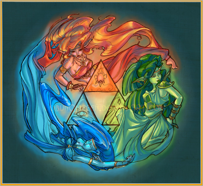 Farore, "with her rich soul, created all the living inhabitants in the world to uphold the law." She is the goddess of all life. Farore is associated with the Triforce of Courage.